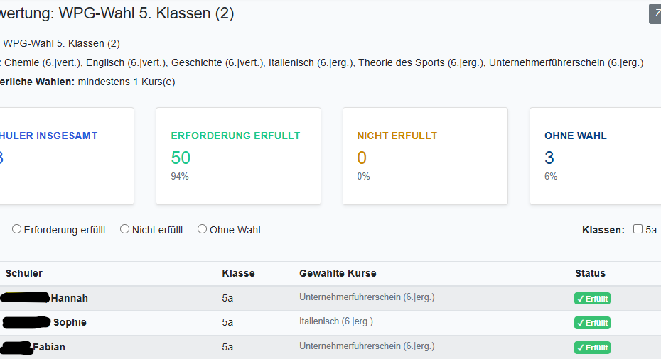 Ab sofort ist es möglich, über bestehende Kurse ein Regelwerk „darüberzulegen“, eine Art Filterdecke, die Wahlen nach bestimmten Kriterien zulässt.