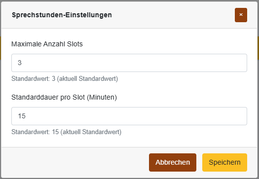 Modul zur Organisation von Sprechstunden und Sprechtagen